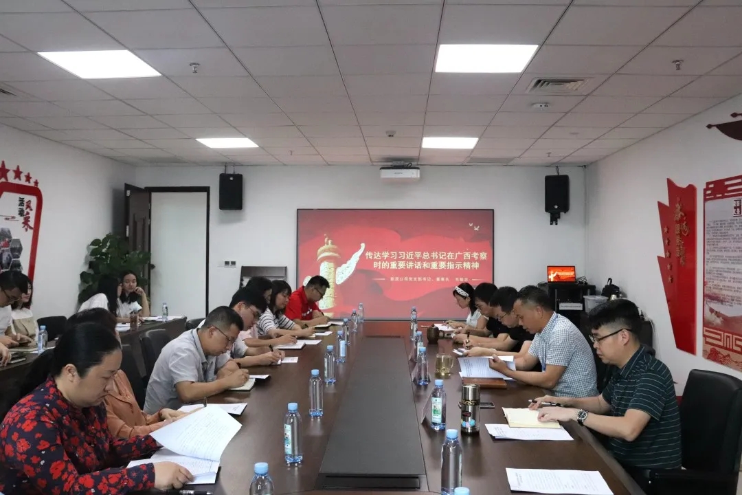 交流研討會(huì)分為“精華解讀”和“分享交研”兩大環(huán)節(jié)。在“精華解讀”環(huán)節(jié)中,韋敏忠董事長(zhǎng)傳達(dá)學(xué)習(xí)了習(xí)近平總書(shū)記在廣西考察時(shí)的重要講話(huà)和重要指示精神,帶領(lǐng)大家集體觀看黨史教育視頻《革命理想高于天》,從習(xí)近平總書(shū)記的指示精神及黨的百年偉大奮斗歷程中汲取繼續(xù)前進(jìn)的智慧和力量。