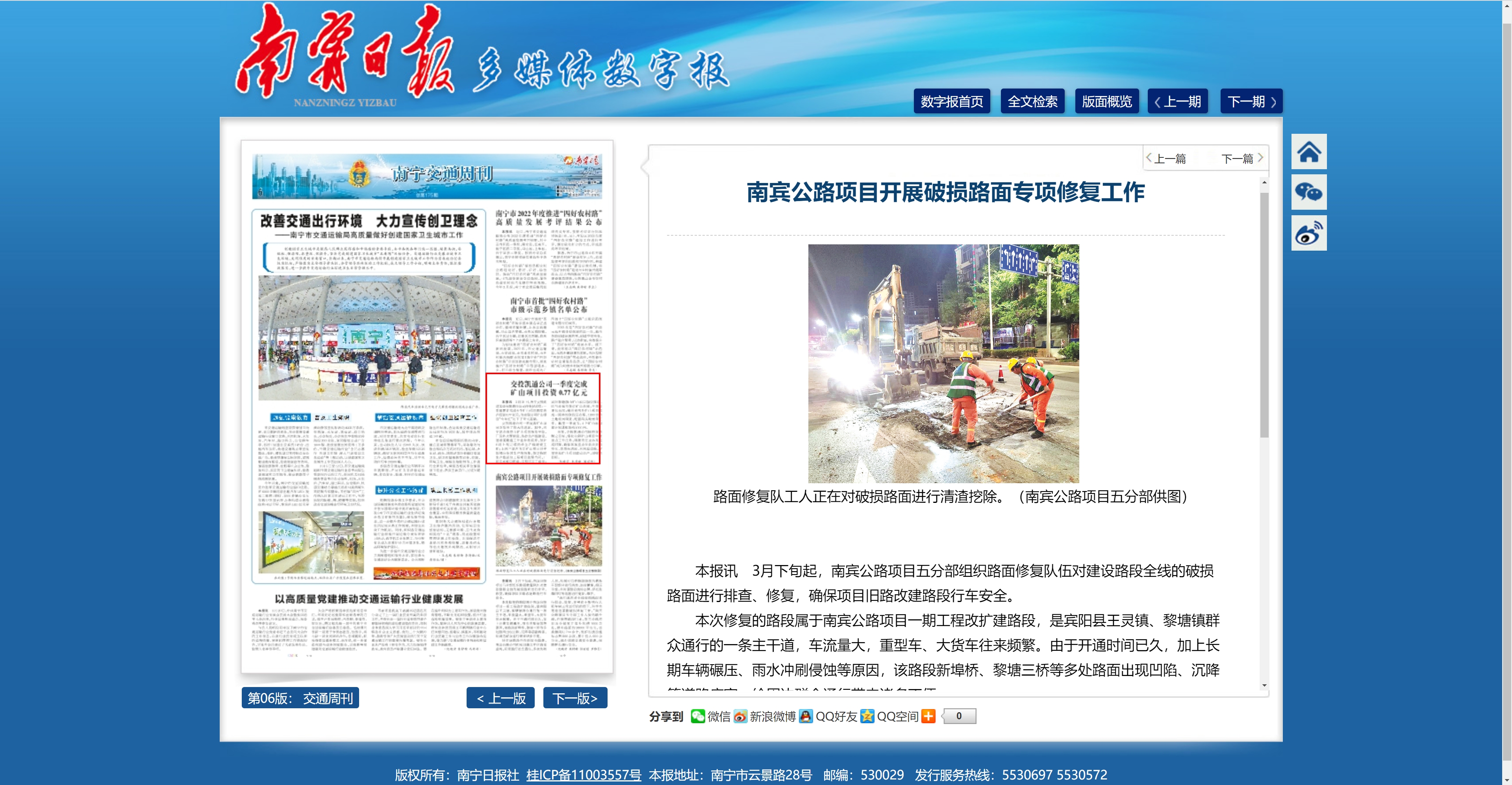 南賓公路項(xiàng)目開(kāi)展破損路面專(zhuān)項(xiàng)修復(fù)工作