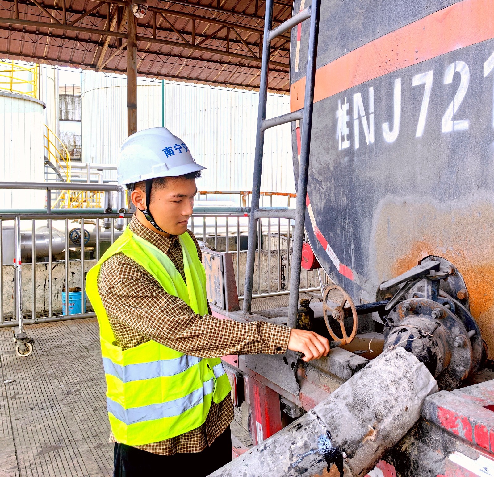 在發(fā)運現場,業(yè)務員們仔細核查每一臺運輸車輛的瀝青鉛封是否完整,認真核對發(fā)貨數據,切實保障物料安全運送到指定目的地。